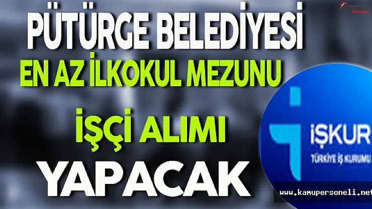 - Pütürge Belediyesi En Az İlkokul Mezunu İşçi Alım İlanı