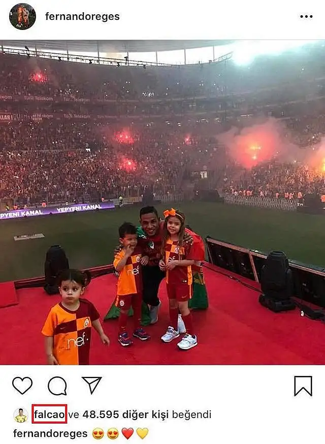 Falcao'nun Türk Telekom Stadyumu'nda çekilen fotoğrafı beğenmesi Galatasaray taraftarlarını oldukça heyecanlandırırken transfer söylentilerini de güçlendirdi.