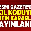 Resmi Gazete'de acil koduyla kritik kararlar yayımlandı