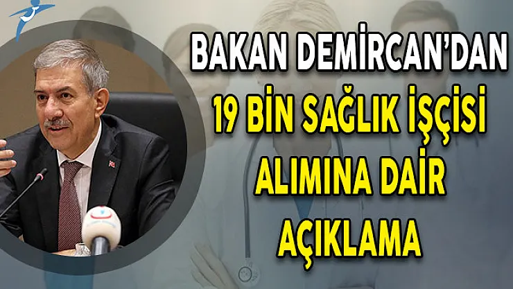 Sağlık Bakanlığı tarafından alım yapılması beklenen Sağlık İşçisi alımına dair yapmış olduğu açıklamalarında, 2018 yılı içinde yapılan 27 bin Sağlık Çalışanı atamaları hatırlatan Bakan Demircan alım yapılacak bu 19 bin sağlık işçisi ile personel açığını kapatacaklarını söyledi.
