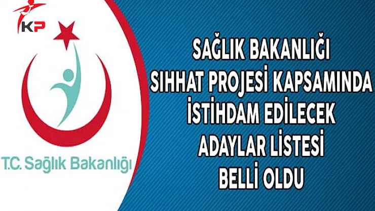 - Sağlık Bakanlığı Sıhhat Projesi Kapsamında İstihdam Edilecek Adaylar Listesi Belli Oldu