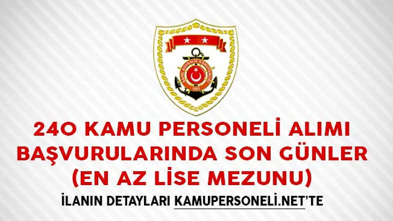 - Sahil Güvenlik Komutanlığı 240 Kamu Personeli Alımı Başvurularında Son Günler! (En Az Lise Mezunu)