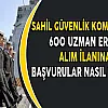 Sahil Güvenlik Komutanlığı yayımladığı bir duyuru ile 600 Uzman Erbaş alımı yapacağını açıklamıştı.Söz konusu ilana başvurular devam etmekte olup başvuruların nasıl yapılacağını haberimizde aktarıyoruz.