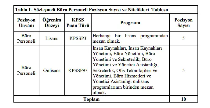 BÜRO PERSONELİ ALIMI BAŞVURU GENEL ŞARTLARI