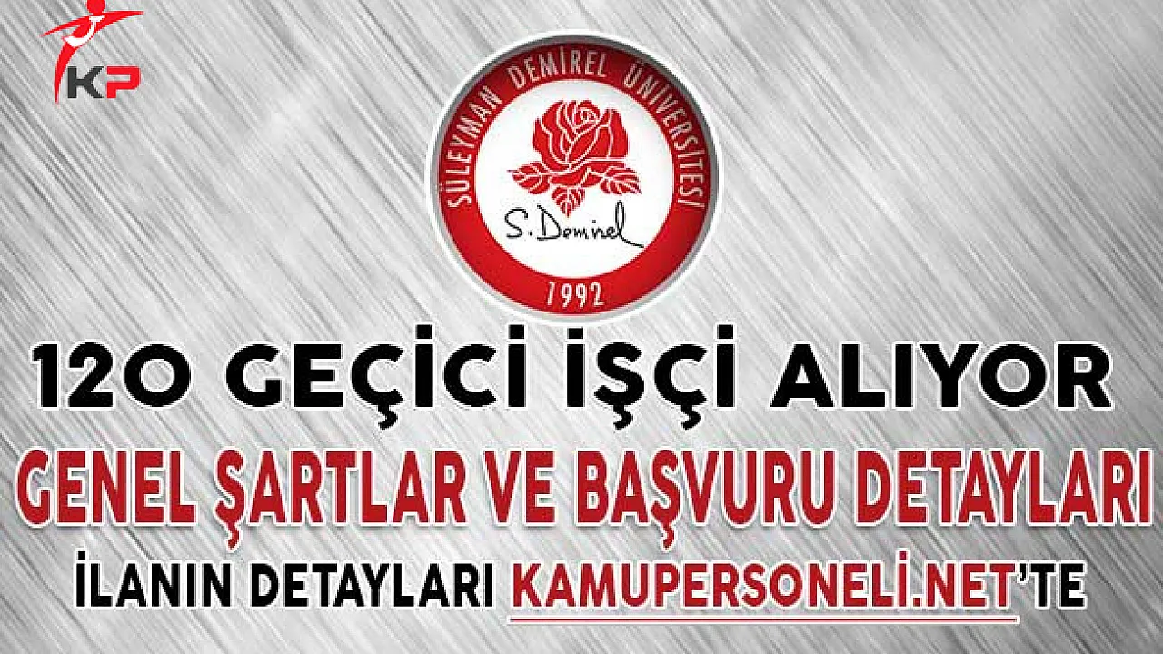 Süleyman Demirel Üniversitesi kendi bünyesinde görevlendirmek üzere 120 geçici işçi alımı yapacağını geçtiğimiz günlerde Devlet Personel Başkanlığının resmi web adresi üzerinden yayımladığı ilanı ile duyurdu.