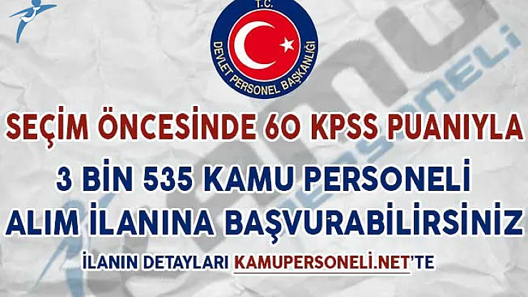 - Seçim Öncesinde 60 KPSS Puanıyla 3 Bin 535 Kamu Personeli Alım İlanına Başvuru Yapabilirsiniz
