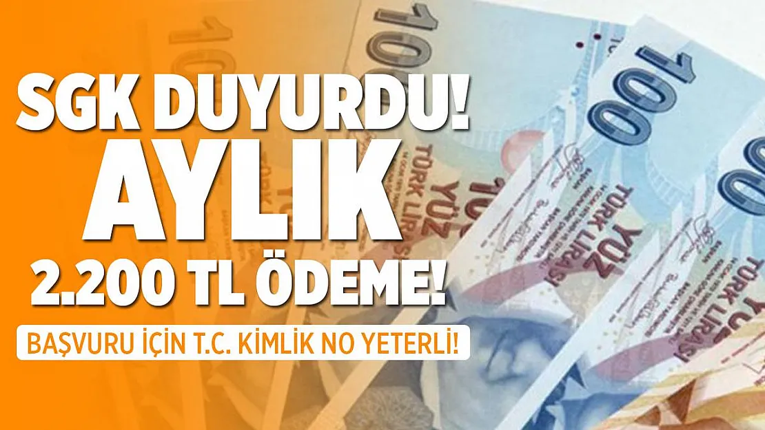 SGK resmen duyurdu! Aylık 2.200 TL verilecek! Başvuru için TC kimlik numarası yeterli!
