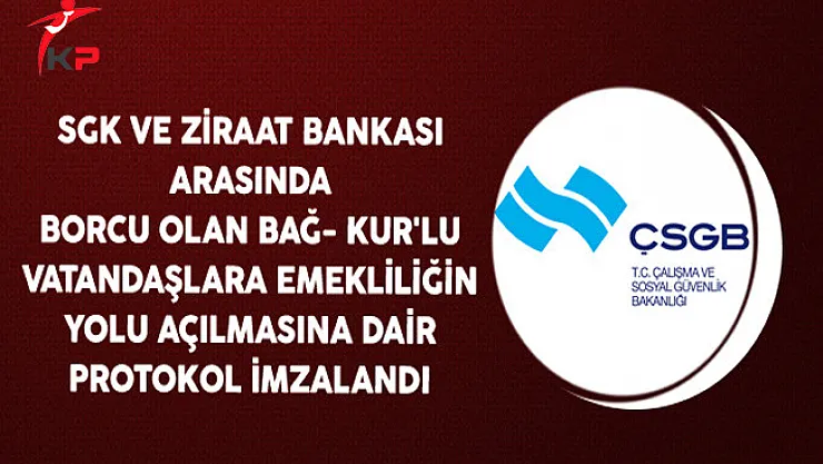 Çalışma ve Sosyal Güvenlik Bakanlığı'nın resmi internet sitesinde yer alan duyuruda SGK ile Ziraat Bankası arasnda protokol imzalandığı ifade edildi.Söz konusu protokolün Bağ- Kur'lu vatandaşların emekli edilmesine yönelik olarak imzalandığı belirtildi.