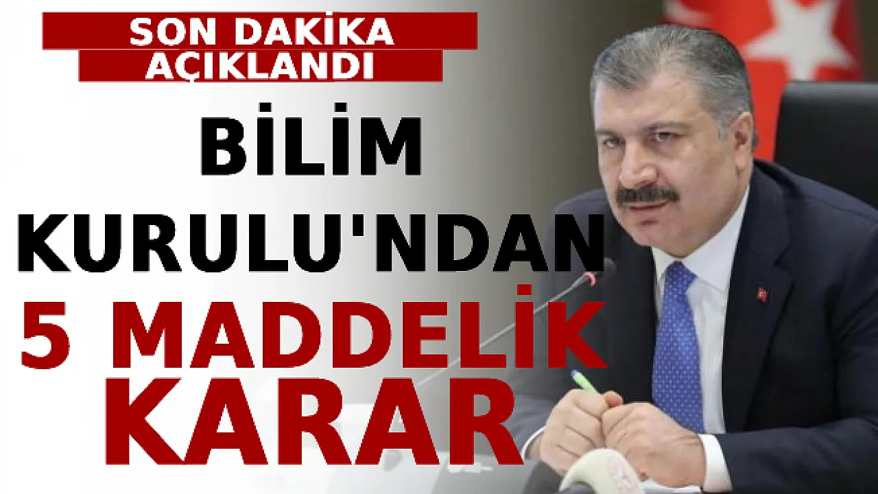 Sağlık Bakanı Fahrettin Koca başkanlığında toplanan Bilim Kurulu’nun ardından tüm Türkiye’yi ilgilendiren 5 maddelik karar çıktı.