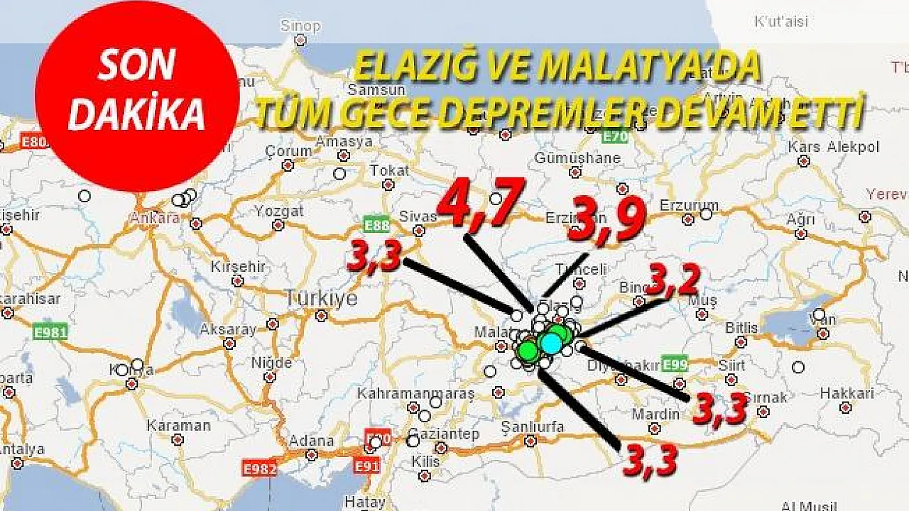 26 Ocak Pazar gecesi sabaha kadar Elazığ, Doğanbaşı, Sivrice, Dörtbölük, Yedipınar, Malatya, Pütürge'de 3.2 ve üzerinde toplamda 6 artçı sarsıntı meydana geldi.