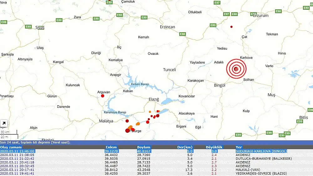Araştırma Enstitüsü Bölgesel Deprem-Tsunami İzleme Ve Değerlendirme Merkezi tarafından paylaşılan verilere göre Bingöl Karlıova Suduragı'da 3 büyüklüğünde bir deprem oldu.