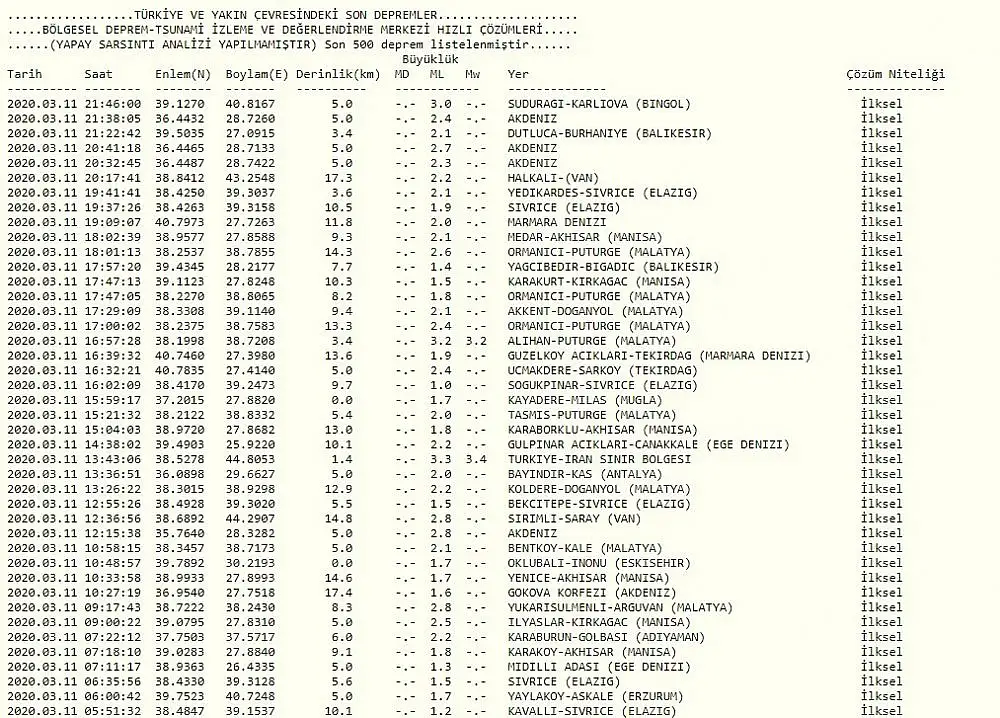 merak konusu oldu. Türkiye'de meydana gelen son depremler şöyle: