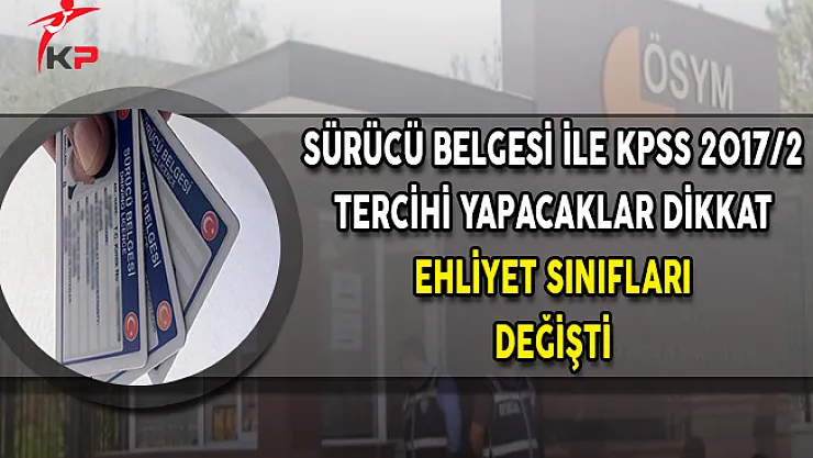 - Sürücü Belgesi İle KPSS 2017/2 Tercih Yapacaklar Dikkat ! Ehliyet Sınıfları Değişti