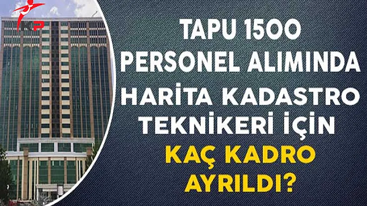 Çevre ve Şehircilik Bakanlığı Tapu Kadastro Genel Müdürlüğü 1500 personel alımı kadro dağılımı yukarıdaki gibidir. Yukarıda 813 tekniker alınacağı ifade ediliyor ancak adaylar bu teknikerlerden kaçının harita kadastro teknikeri olduğunu merak ediyorlar. Ancak hala yetkililerden bir açıklama yapılmadı ve kaç harita kadastro teknikeri alımının yapılacağı ifade edilmedi.
