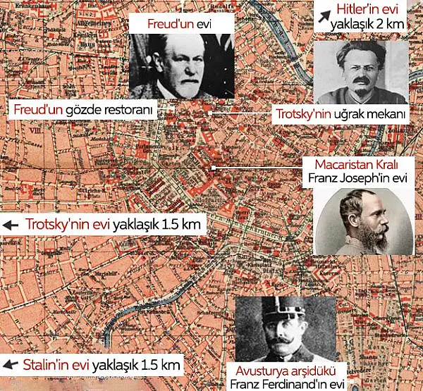 Ensonhaber'in haberine göre; Viyana'da farklı zamanlarda daha birçok önemli şahsiyet yaşamış ya da yolları Viyana'dan geçmiştir. Fakat 1913 yılında daha sonra dünyanın kaderini değiştiren bu kadar kişinin aynı anda orada bulunması fazlasıyla tesadüf değil mi?20. yüzyılı sarsan adamların komşu çıkması