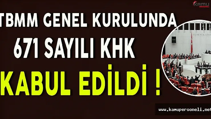 TBMM Genel Kurulunda 671 Sayılı KHK Kabul Edildi