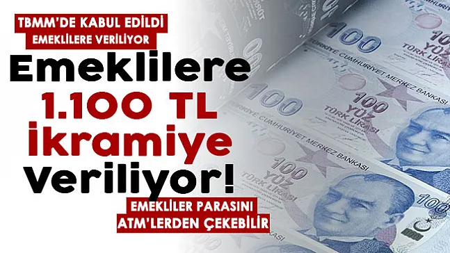 - TBMM'de kabul edildi: Bütün emeklilere ikramiye kararı alındı! Emekliye 1.100 TL ikramiye: ATM'den çekebilirsiniz