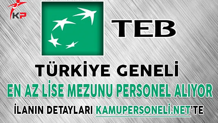 - TEB Türkiye Geneli En Az Lise Mezunu Çok Sayıda Banka Personeli Alımı Yapıyor