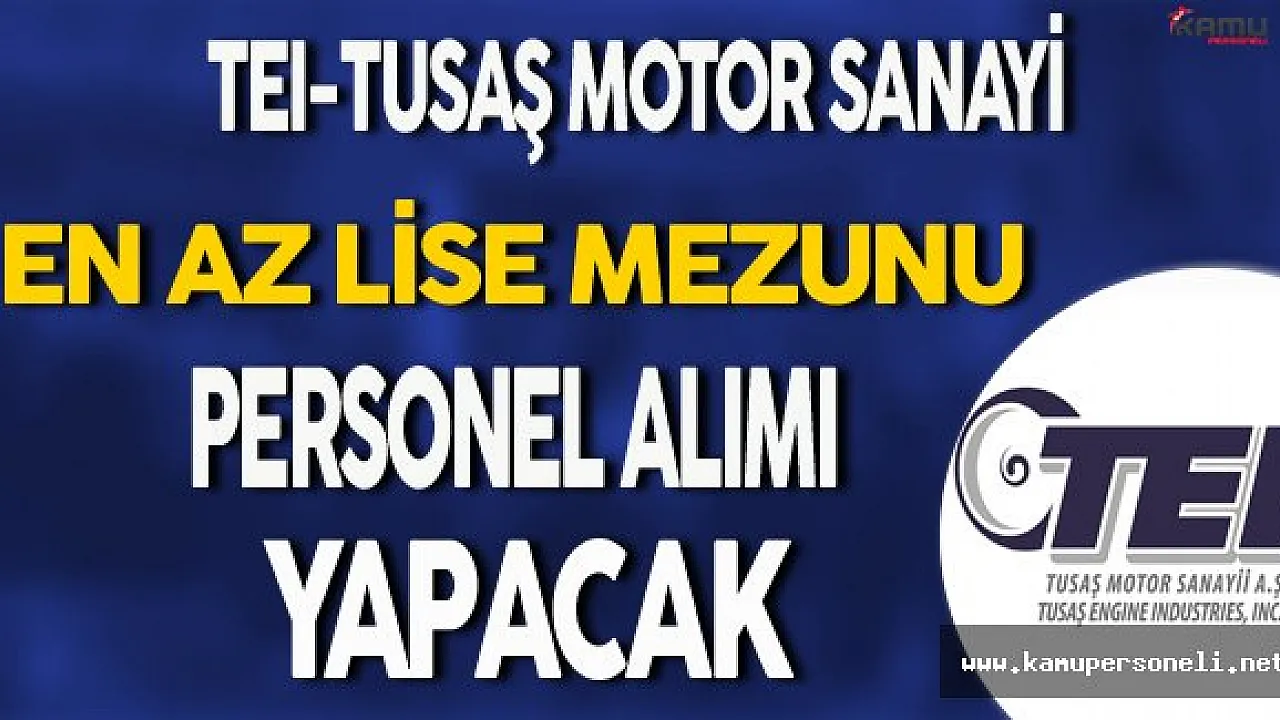 TEI-Tusaş Motor Sanayi 2016 yılının son çeyreğinde verdiği ilanlarda lise mezunui önlisans mezunu, lisans mezunu personel alıyor. Açık bulunan kadrolar verilen ilanla birlikte duyuruldu ve her kadro için adaylardan farklı şartlar isteniyor. İlanda bulunan mavi yakalılar ve beyaz yakalılar kadrolarına başvuracak adayların en az lise mezunu olması gerekiyor. İşe başlayacak personeller sürekli/tam zamanlı olarak çalışacaklar. Personel alımları 26 farklı kadroda gerçekleştirilecek.