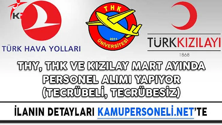 Mart ayında personel alımı yapacağını duyuran kurumlar arasında; Türk Hava Yolları (THY), Türk Hava Kurumu (THK) ve Türk Kızılayı da bulunuyor. Söz konusu bu kurumlar tarafından yayımlanan ilanlara göre Mart ayında çok sayıda personel alımı yapılıyor. İlanlarla alakalı olarak merak edilen detayları açıklıyoruz.