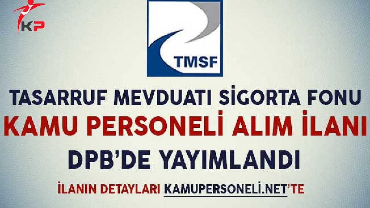 Tasarruf Mevduatı Sigorta Fonu, Devlet Personel Başkanlığı'nın resmi internet sitesi üzerinden yayımladığı bir ilan ile kamu personeli alımı yapacağını ilan etti.