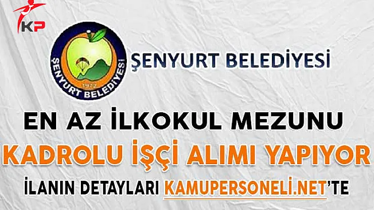 - Tokat Şenyurt Belediye Başkanlığı En Az İlkokul Mezunu Kadrolu İşçi Alım İlanı Yayımladı