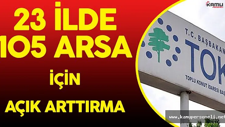 Başbakanlık Toplu Konut İdaresi Başkanlığı (TOKİ) 23 ilde, 105 arsayı satışa sunacak.