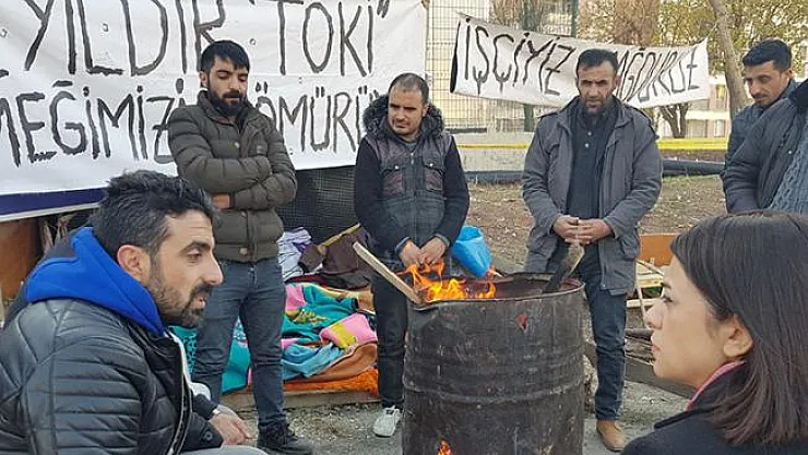 Ailelerinden kilometrelerce uzakta TOKİ inşaatında çalışan işçiler, yıllardır alamadıkları maaşları için “borç batağına düştük” diyerek eyleme başladı. Yaklaşık 15 işçi, şantiye önüne kurdukları çadırlarda direnmeye başladı. Taşeron firmadan paralarını alamadıklarını söyleyen işçiler, maaşlarının ödenmesini beklerken polis müdahalesi ile karşılaştı.