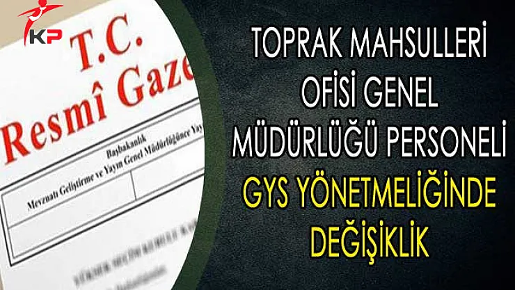 Toprak Mahsulleri Ofisi Genel Müdürlüğü Personeli GYS Yönetmeliğinde Değişiklik