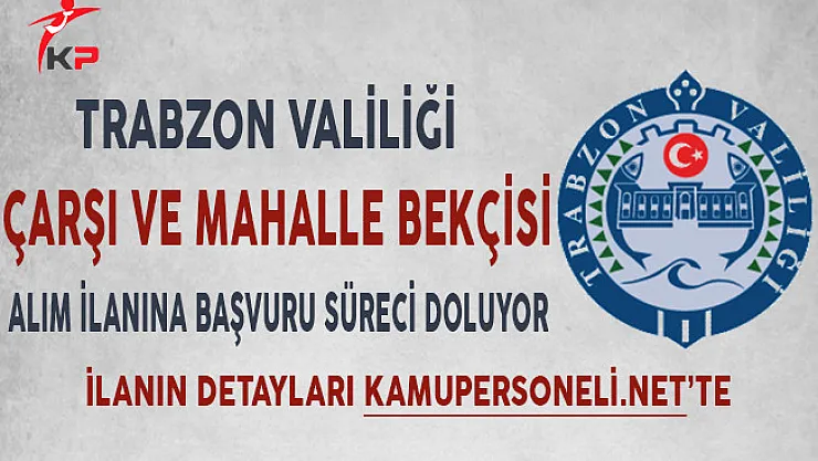 Trabzon Valiliği, Devlet Personel Başkanlığı aracılığıyla bir ilan yayımlayarak Çarşı ve Mahalle Bekçisi alımı yapılacağını açıklamıştı.Söz konusu Bekçi alım ilanına başvuru süreci bugün (27 Kasım) tarihinde sona eriyor.