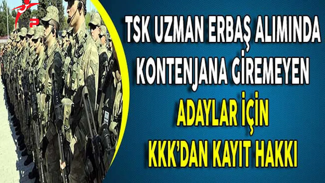 - TSK Uzman Erbaş Alımı İçin Kontenjana Giremeyen Adaylar İçin KKK'ya Kayıt Hakkı
