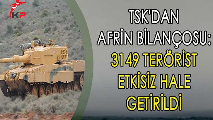 TSK'dan Afrin Bilançosu: 3149 Terörist Etkisiz Hale Getirildi