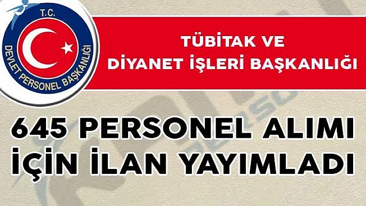 Devlet Personel Başkanlığı ve TÜBİTAK tarafından yayımlanan ilanlarla beraber 645 personel alımı yapılıyor.