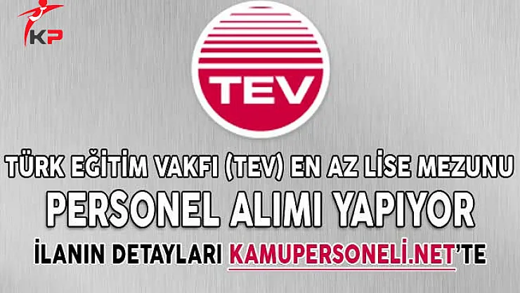 - Türk Eğitim Vakfı (TEV) En Az Lise Mezunu Personel Alımı Yapıyor