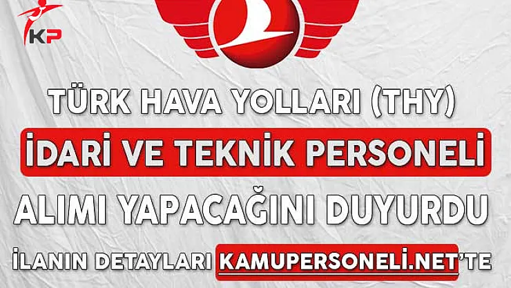 Türk Hava Yolları (THY) İnsan Kaynakları Genel Müdürlüğü resmi internet sitesi üzerinden yayımladığı personel alım ilanında güncellemeye gitti. Kurumun ihtiyacı kapsamında yayımlanan personel alım ilanlarına göre, personel alımlarının İdari ve Destek Personeli kapsamında yapılacağı duyuruldu.