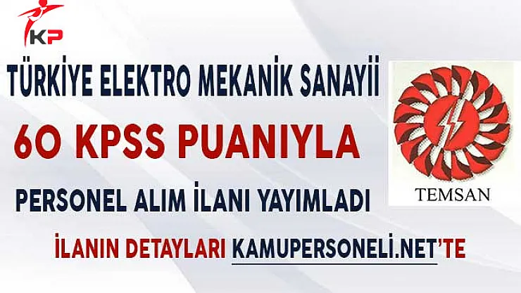 - Türkiye Elektro Mekanik Sanayii (TEMSAN) 60 KPSS Puanıyla Personel Alım İlanı Yayımladı