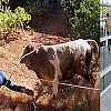 Aydın'da kestiği danayı yüzen 56 yaşındaki Mehmet Toyga, sol bacağına isabet eden maganda kurşunuyla yaralanıp hastaneye kaldırıldı.