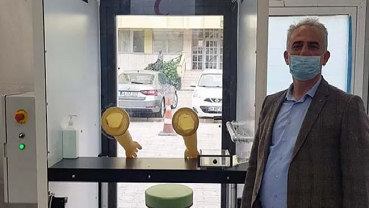 Maltepe Üniversitesi Meslek Yüksekokulu Dr. Öğretim Üyeleri Şener Odabaşoğlu ve Kemal Fırat Oğuz iş birliğiyle üretilen istasyon içinde morötesi ışın lambalarıyla sterilizasyon sağlandığı sırada uyguladığı negatif basınç ile virüsün yayılması engelleniyor.