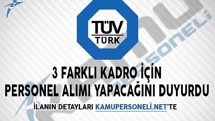 3 farklı kadro için personel alımı yapacağını duyuran TÜVTÜRK personel açığını kapatmak için ilanalr yayımlamaya devam ediyor.