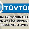 - TÜVTÜRK Kasım Ayı Sonuna Kadar En Az Lise Mezunu Personel Alımı İçin İlan Yayımladı!