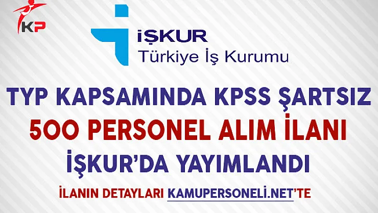 - TYP Kapsamında KPSS Şartsız 500 Personel Alım İlanı İşkur'da Yayımlandı