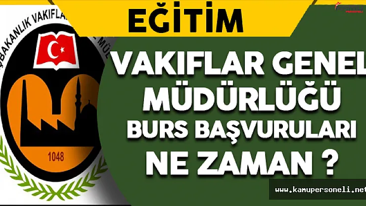 Vakıflar Genel Müdürlüğü; ilköğretim, ortaöğretim, lise ve yükseköğrenim öğrencilerine burs veriyor. Vakıflar Genel Müdürlüğü, 5 Eylül 2016'da, vereceği bursların başvuru tarihlerine ilişkin bir duyuru yayımladı.