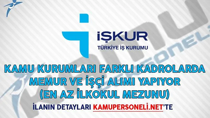 - Yeni İlanlar Yayımlandı! Kamu Kurumları Farklı Kadrolarda Memur ve İşçi Alımı Yapıyor! (En Az İlkokul Mezunu)