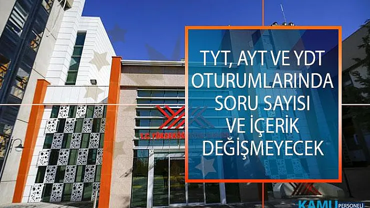 YKS'de, TYT, AYT ve YDT oturumlarındaki soru sayılarında ve içeriklerinde siz değerli öğrencilerimize verdiğimiz söze uygun olarak bir değişiklik olmayacak
