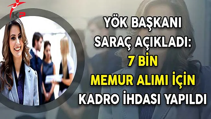 - YÖK Başkanı Saraç Açıkladı: 7 Bin Memur Alımı İçin Kadro İhdası Yapıldı !