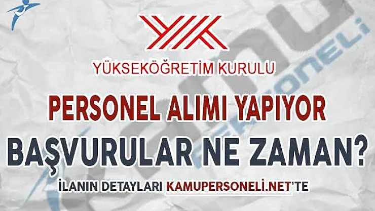 YÖK Başkanlığı tarafından bir ilan yayımlandı. Yayımlanan ilanda personel alımı yapılacağı ifade edildi. Yayımlanan ilana başvuruların ne zaman başlayacağını ve genel şartların ne olduğunu kamupersoneli.net olarak okuyucularımızla paylaşıyoruz...