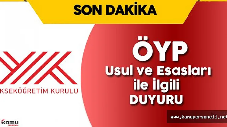 YÖK'ten ÖYP Usul ve Esasları ile İlgili Duyuru Yayımlandı 1 Ağustos 2016 tarihli Yükseköğretim Kurulu Başkanlığı duyurusuna göre Öğretim Üyesi Yetiştirme Programına İlişkin Usul ve Esasların Yabancı Dil Eğitimi ve Lisansüstü Eğitim-Öğretim başlıklı 11.mad