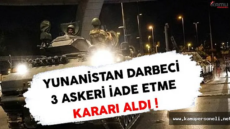 Yüzbaşı oldukları belirtilen üç darbeci asker, Yunanistan'ın başkenti Atina'daki temyiz mahkemesinde hakim karşısına çıktı. Hakimler, "devleti yıkmaya çalışmak ve meclisin toplanmasını engellemek" gerekçeleriyle Türkiye'nin iade talebini haklı buldu.