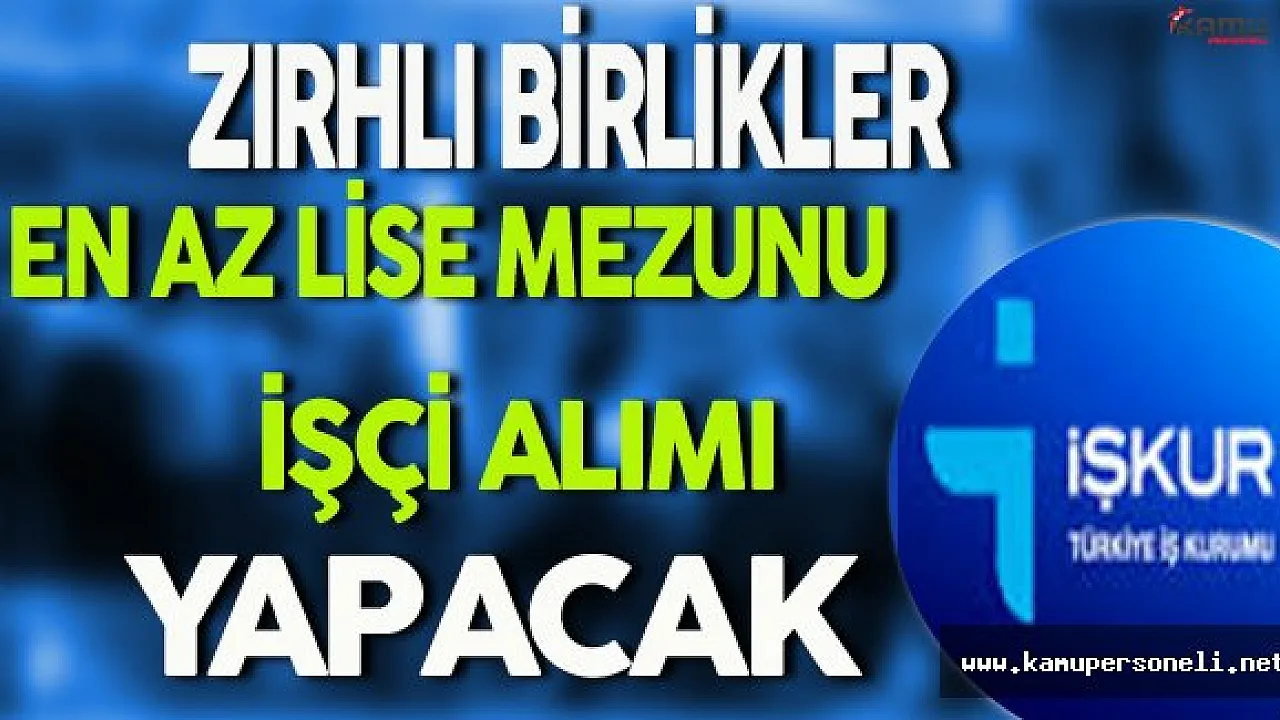 - Zırhlı Birlikler Okulu En Az Lise Mezunu İşçi Alacak